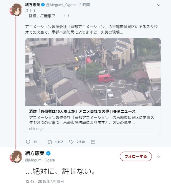 絶対に 許せない 涙とまらん 京アニ火災に声優などアニメ関係者