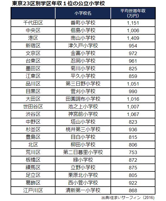 東京の公立小学校 学区別 世帯年収ランキング マネーポストweb
