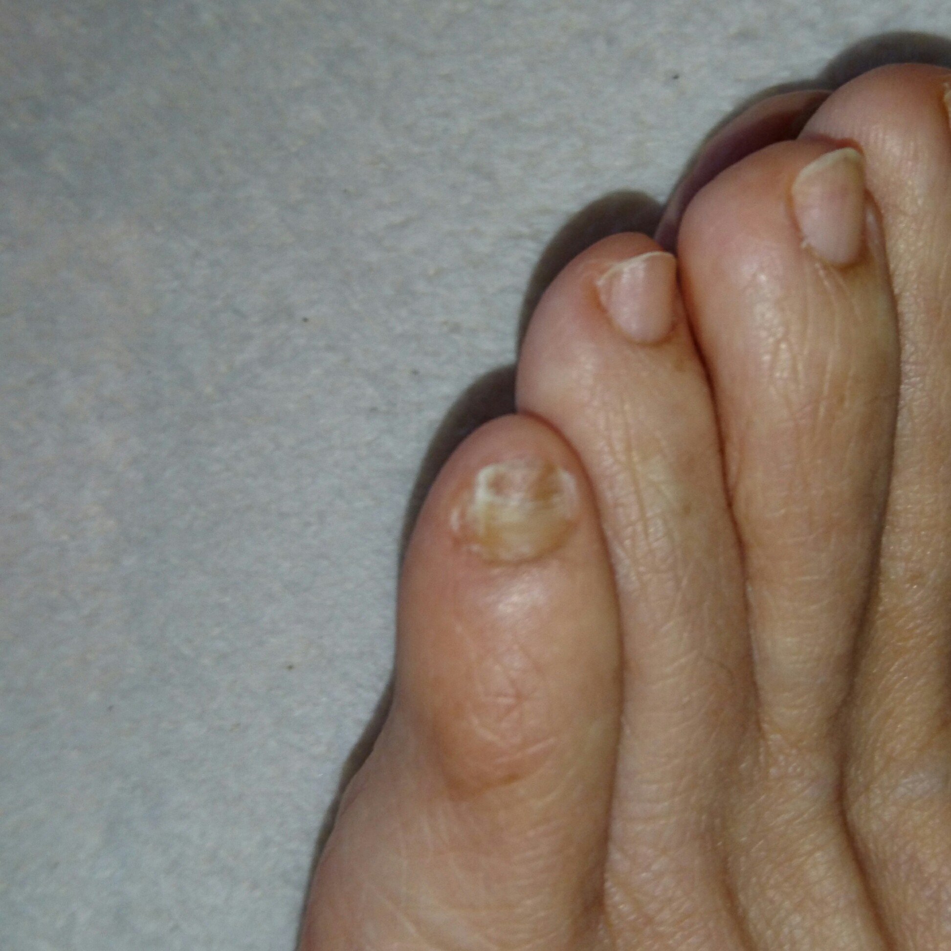 この足の小指は 爪水虫でしょうか 介護の仕事をしており裸足にサンダ