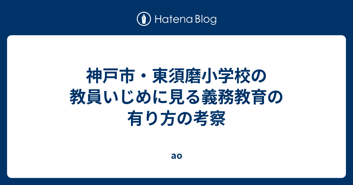 神戸市 東須磨小学校の教員いじめに見る義務教育の有り方の考察 Tr