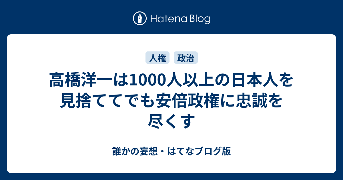 高橋洋一は1000人以上の日本人を見捨ててでも安倍政権に忠誠を尽くす